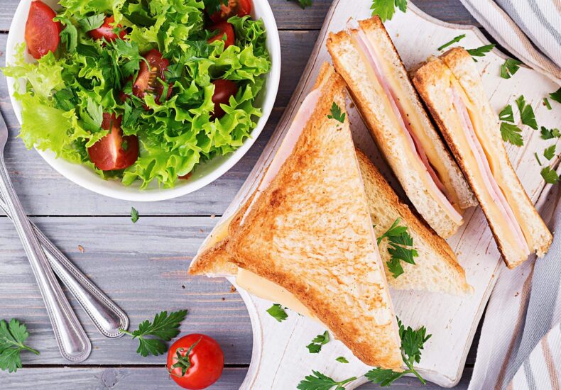 Sandwiches are food items that come with two pieces of bread filled with a mixture including vegetables, meat or fish. The filling is customarily placed between the two portions of the bread. Cheese, ham and other toppings layered on a fluffy inside with crunchy crust.